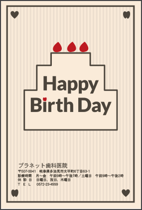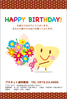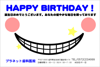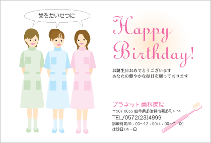 歯医者さんからのお知らせが楽しみになる。そんなサプライズを患者さんにお届けできるサービスです。定期健診のお知らせやバースデーカードなど、用件にあわせた多彩なハガキをご利用いただけます。