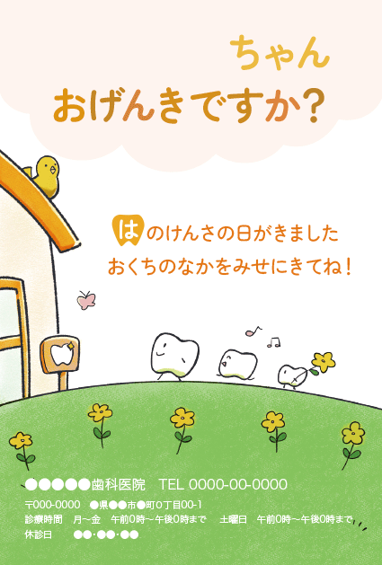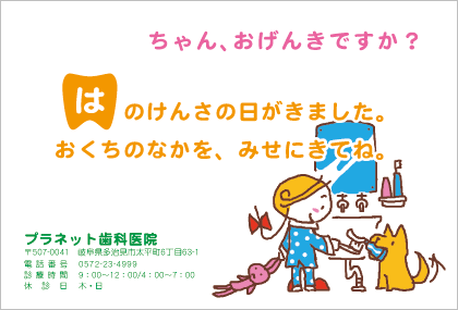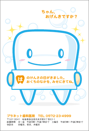 歯医者さんからのお知らせが楽しみになる。そんなサプライズを患者さんにお届けできるサービスです。定期健診のお知らせやバースデーカードなど、用件にあわせた多彩なハガキをご利用いただけます。