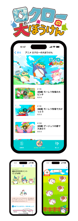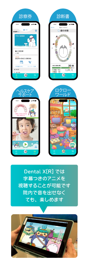 Dental X[R]内の「DX_Finder」と、患者さん向けアプリ「Dental E」にある「ロクローワールド」で
