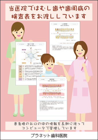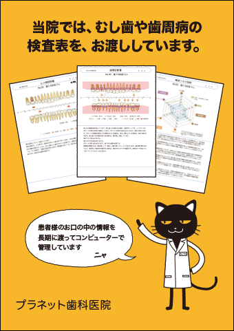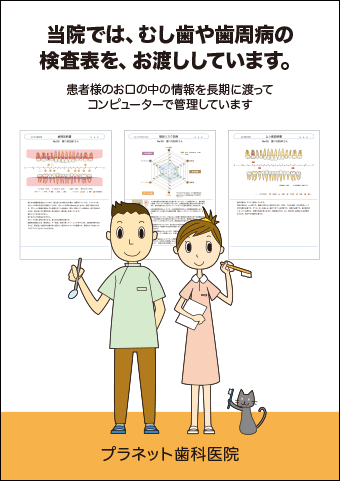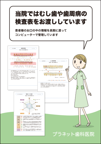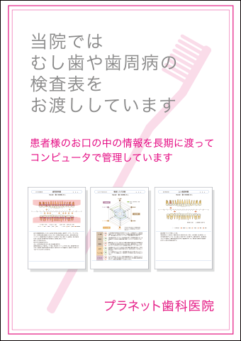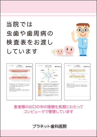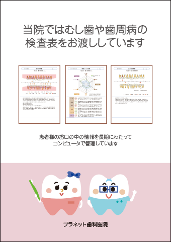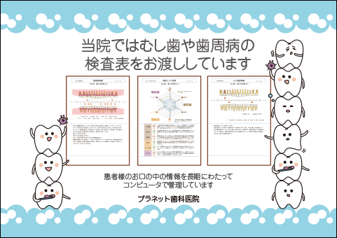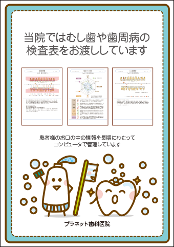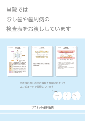 DentalXの「歯の診断書」を患者さんにわかりやすく紹介できるポスターがご利用いただけます。待合室に貼っておけば、事前に診断書に対する患者さんの理解が深まり、スムーズな治療につながります。