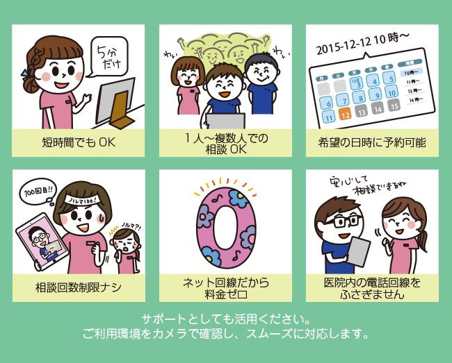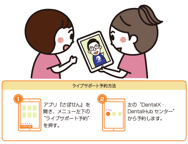 iPad専用アプリケーション『さぽせん※』をダウンロードしていただき、ライブサポート予約から希望の日時を設定すればスタッフが対応いたします。電話のようにお待たせすることなく